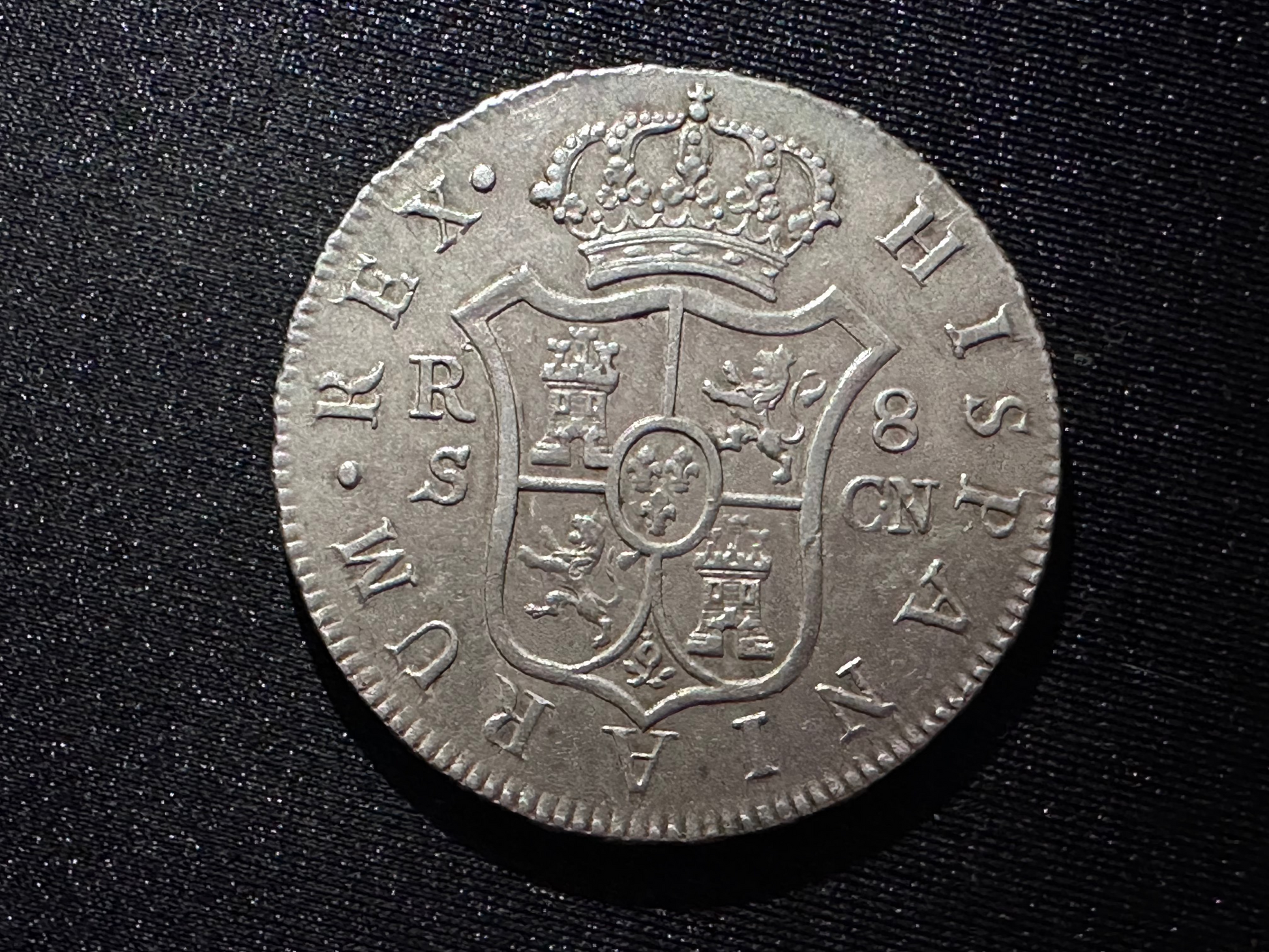 Moneda de 8 Reales de Fernando VII 1808 en la ceca de Sevilla con Ensayadores CN