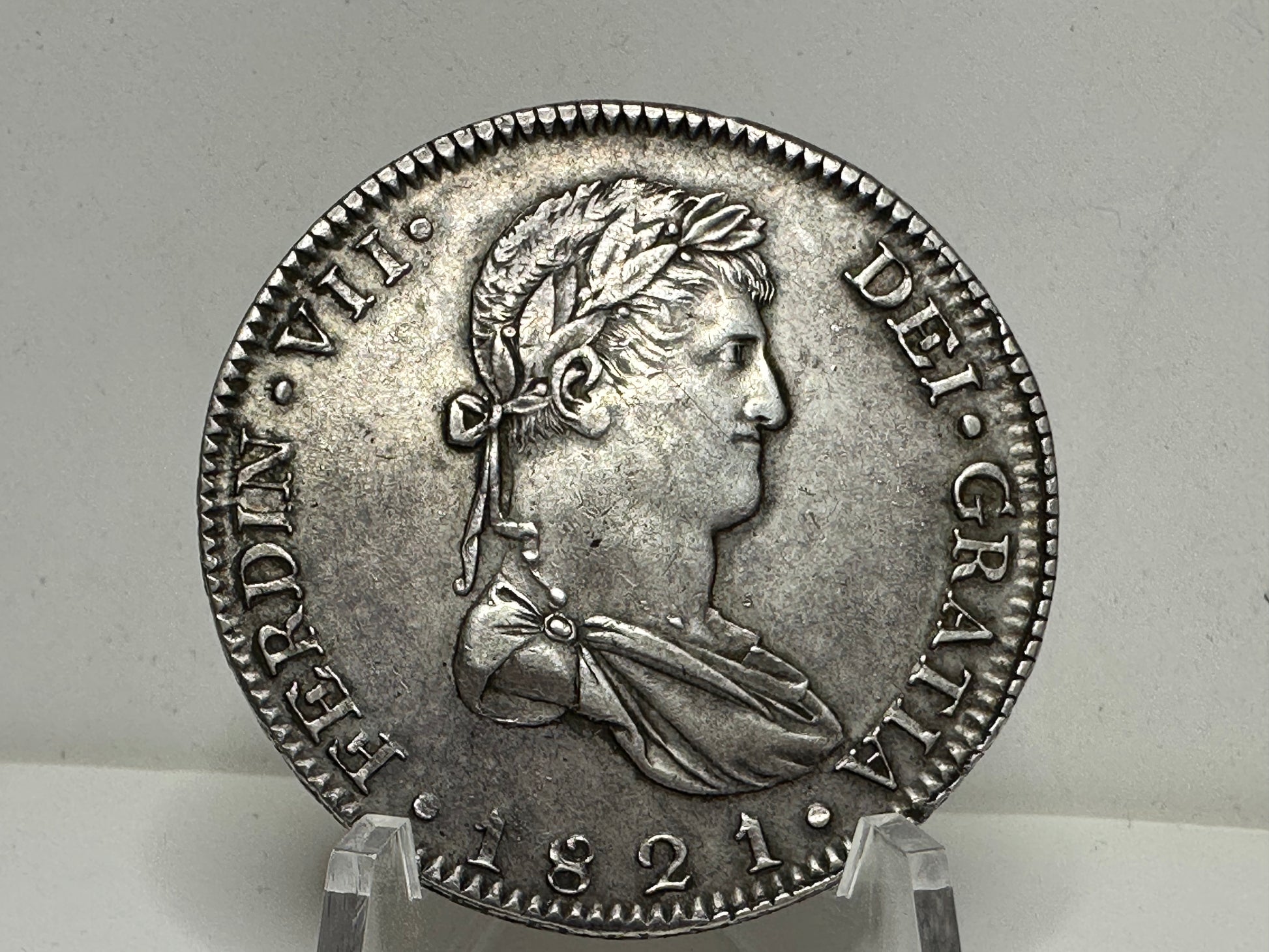 Moneda de 8 reales de Fernando VII 1821 ceca de Guadalajara con Ensayadores F.S.