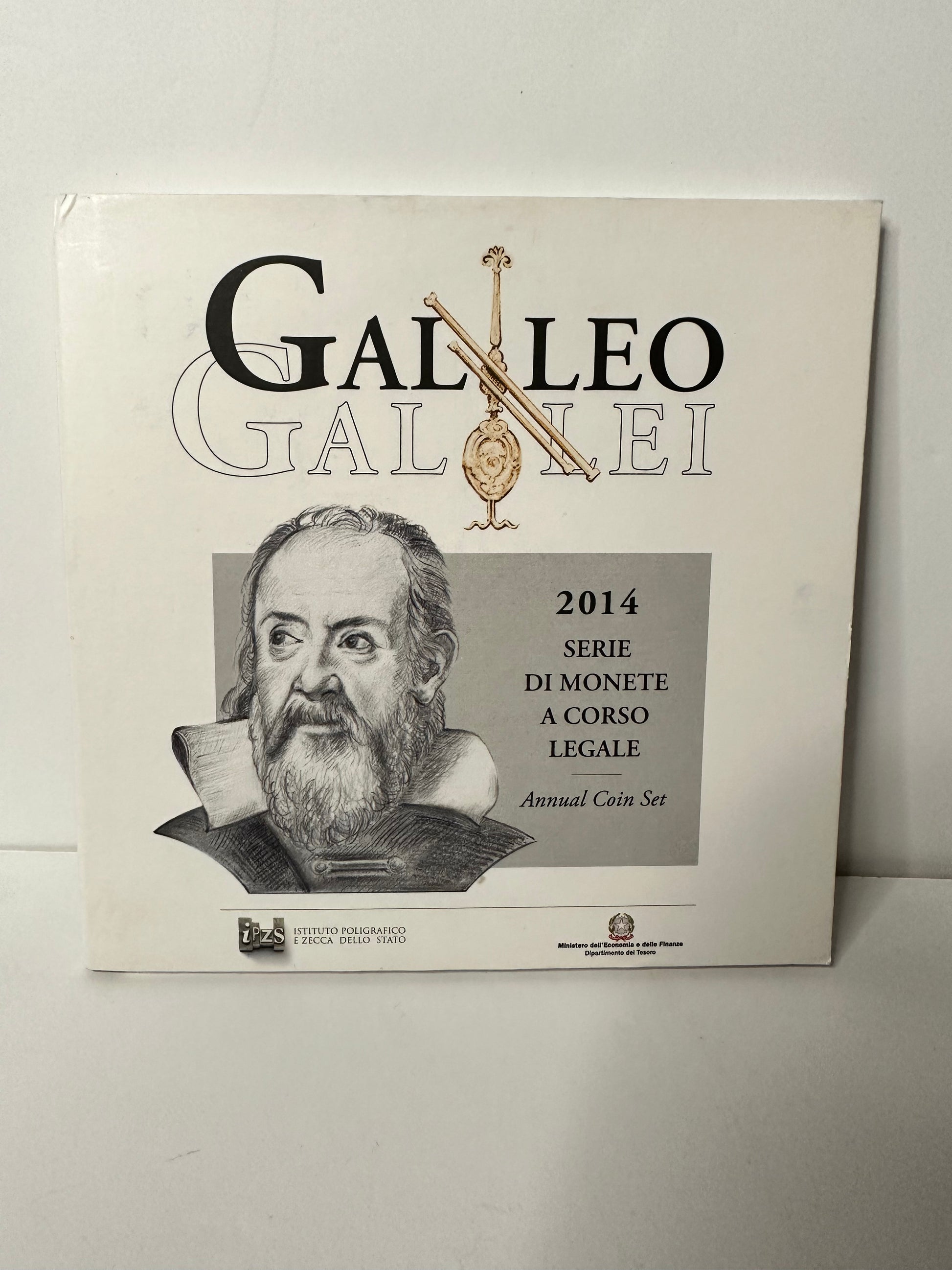 Cartera de monedas de curso legal de Italia 2014 de 8 monedas circulantes del año más la conmemorativa de Galileo Galilei