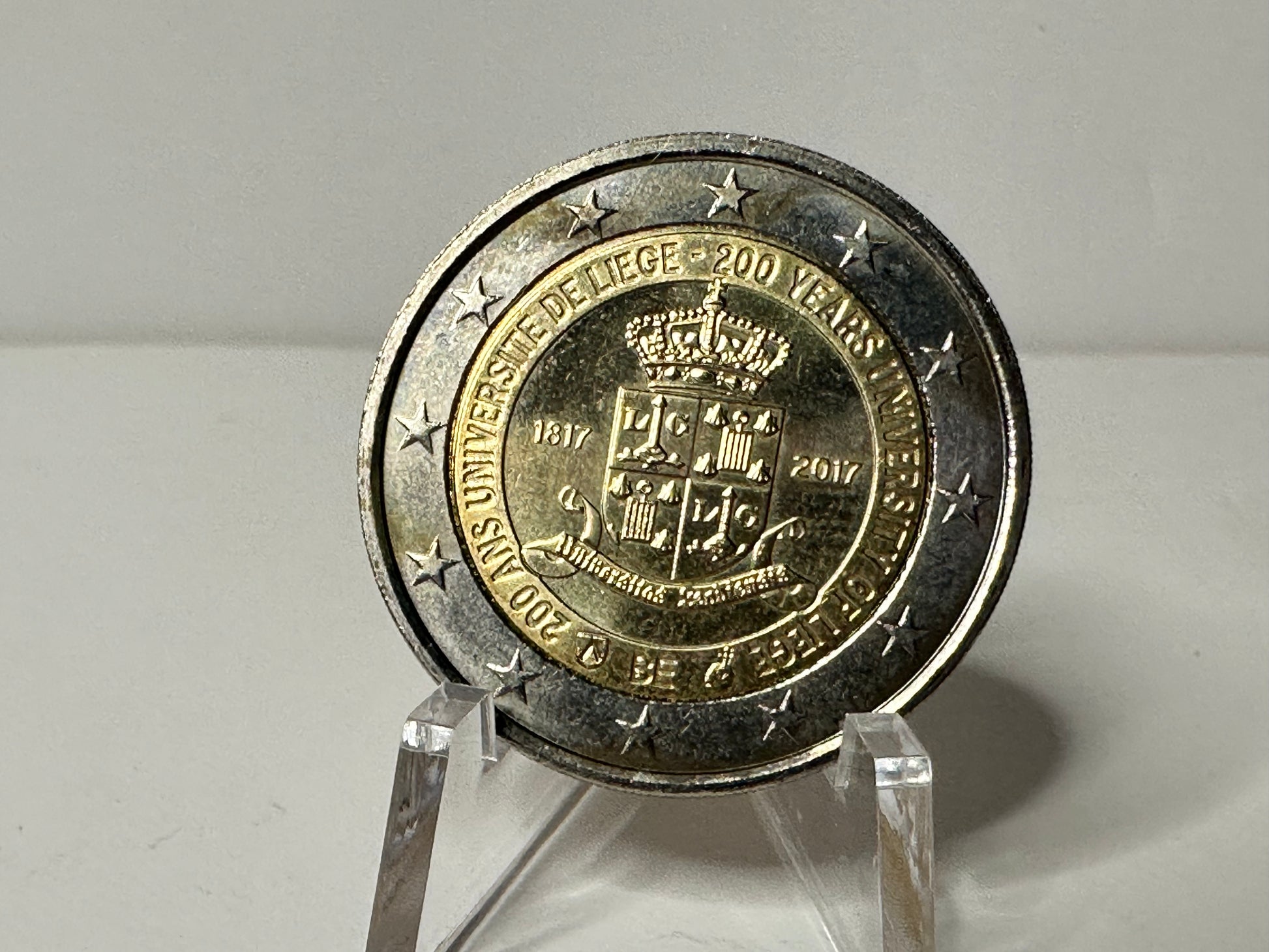 Lote de 3 monedas de 2 Euros (Mónaco 2002: Rainier III, Bélgica 2006: Reapertura del Atomium en Bruselas, Bélgica 2017: 200 años de la Universidad de Liege sin coincard)